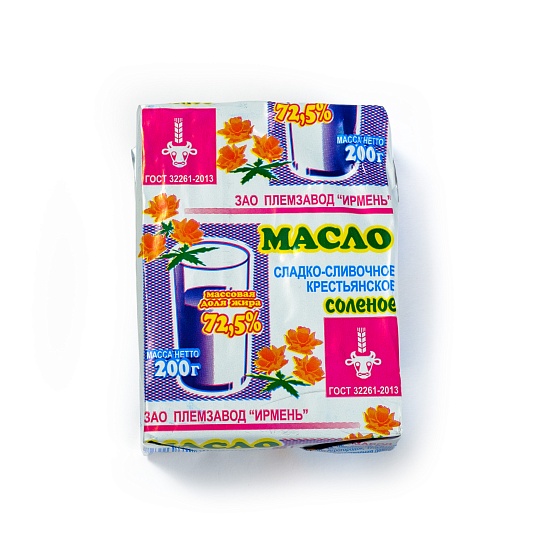 Масло крестьянское соленое ЗАО племзавод «ИРМЕНЬ» идеально для бутербродов, приготовления горячих блюд, соусов и выпечки. Его по достоинству оценят те, кто ценит классический вкус натуральных продуктов.